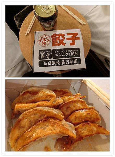 然後店員弟弟就開始煎起餃子,約莫8分鐘,煎餃起鍋,讓我們外帶回到飯店